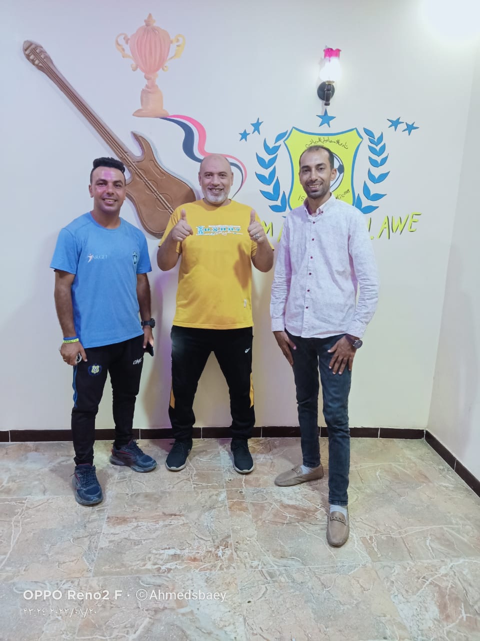 أحمد السباعي والكابتن على عماد والكابتن أبو سريع الذين قدموا للحاج شعبان تشيرت النادي الإسماعيلي كهدية رمزية تعبيرًا عن